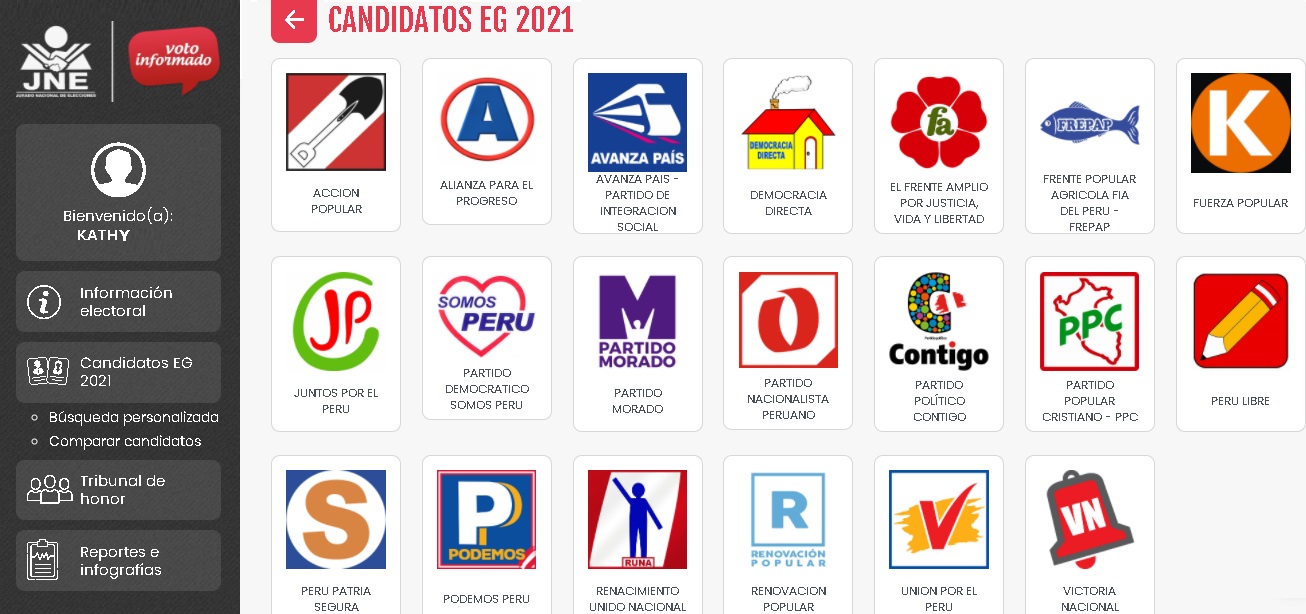 En la plataforma web se podrá acceder a los datos consignados por aspirantes a la presidencia y vicepresidencias, Congreso y Parlamento Andino respecto a formación académica, experiencia laboral y cargos partidarios o de elección popular.