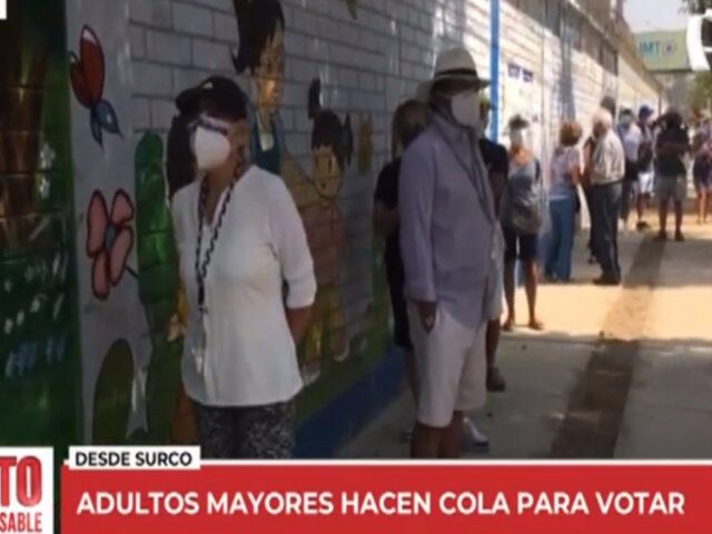Un equipo de Panamericana Televisión llegó hasta un centro educativo en Surco donde adultos mayores vienen realizando largas colas por más de tres horas ante la falta de apertura de mesas de sufragio.