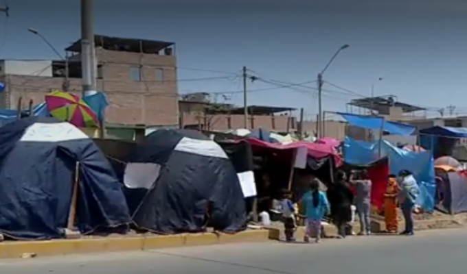 Las numerosas familias que fueron desalojadas el pasado 28 de abril de la Zona Arqueológica de Lomo de Corvina, continúan acampando en las calles aledañas del distrito de Villa El Salvador.