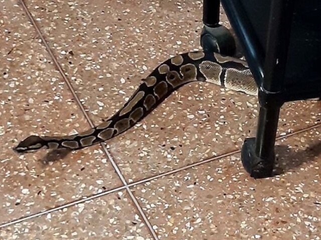 Agentes del Serenazgo de Surco y policías con quienes realizan su patrullaje integrado retiraron a una serpiente que fue hallada dentro de una vivienda ubicada en Surco. Los ocupantes del inmueble desconocen cómo es que llegó a su sala.