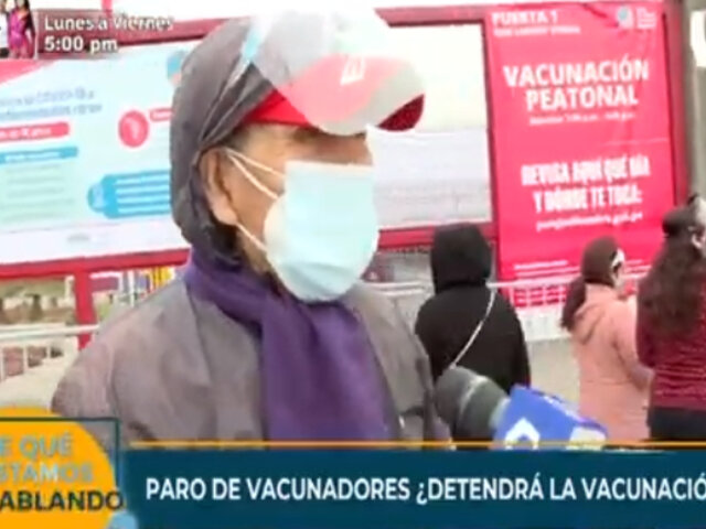 En el distrito de San Luis, decenas de adultos mayores que el día de ayer no recibieron la vacuna contra el covid-19 debido al paro de médicos y enfermeras hicieron cola desde la madrugada en el centro de inmunización instalado en la Villa Deportiva Nacional (Videna).
