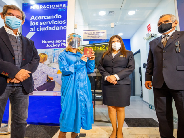 La Superintendencia Nacional de Migraciones puso en funcionamiento la nueva agencia descentralizada Jockey Plaza en Santiago de Surco, donde se expedirá el pasaporte electrónico los siete días de la semana desde las 09:30 a.m. hasta las 6:30 p.m.