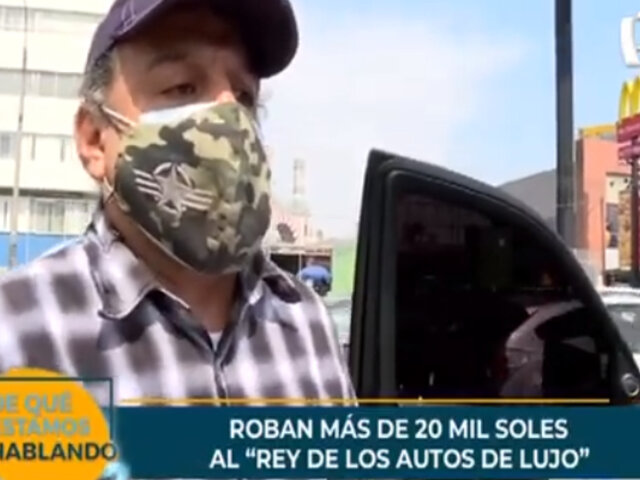 Marco Antonio Jurado, conocido como el 'Rey de los autos de lujo', es un empresario dedicado desde hace más 30 años al negocio de la compra y venta de vehículos del alta gama que hoy sale frente a a nuestras cámaras para denunciar un robo de más de 20 mil soles en tan solo cinco minutos.