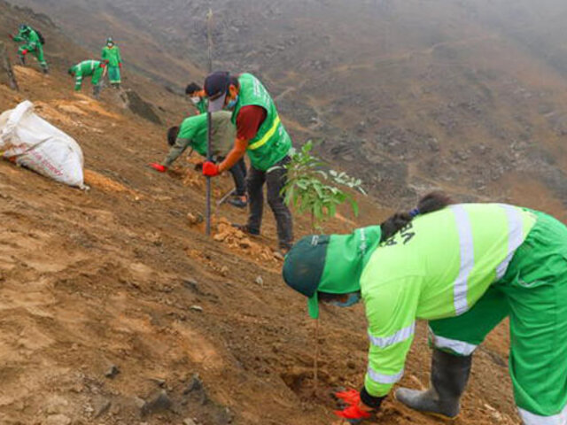 Trabajadores de la Municipalidad de El Agustino plantaron 500 árboles en los cerros de su distrito, con el fin de evitar desplazamientos de tierra y piedras debido a los últimos movimientos sísmicos.