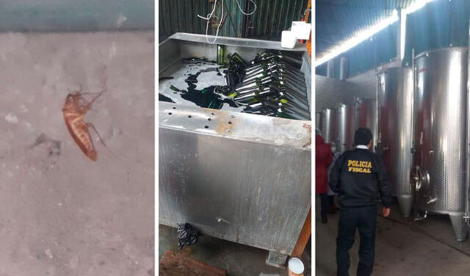 Se trata de la vitivinícola 'Real Cavas de Pachacamac', situado en la Mz. M LT 2, donde los agentes policiales, hallaron gran cantidad de telarañas, cucarachas y hasta eses de animales dentro del establecimiento, mientras elaboraban los vinos, piscos y espumantes.