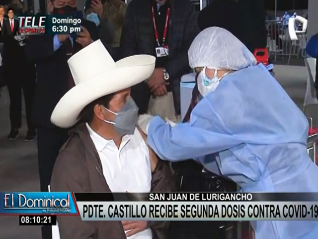 El presidente de la República, Pedro Castillo Terrones recibió, la tarde de ayer, la segunda dosis de la vacuna contra la Covid-19. Fue en el Parque Zonal Huiracocha, en el distrito de San Juan de Lurigancho (SJL).