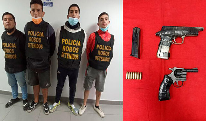 Los detenidos fueron identificados como Cesar O. (24), Jean Carlos C. (25), Jhin P. (22) y Anthony H.(22), los intervinieron a la altura de la Av. Prolongación Canevaro y calle Las Torres en la Cooperativa Santa Úrsula.