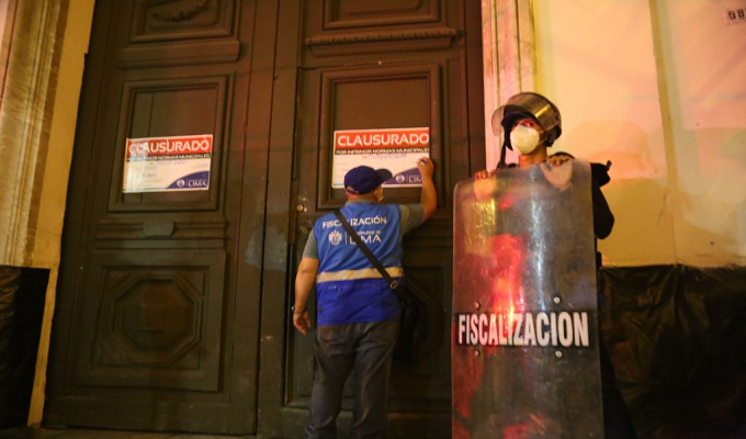 Durante la inspección de madrugada, los agentes de Fiscalización también clausuraron las discotecas Quasar, en la cuadra 8 del Jr. Lampa; Etnias, en el Jirón de la Unión, y otro negocio ubicado en la Av. Nicolás de Piérola.