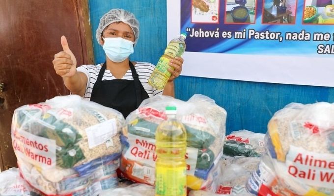 Los productos entregados fueron: conservas de pescado, leche evaporada entera, hojuelas de avena con quinua, arroz, fideos, frijol, aceite vegetal y azúcar rubia. El periodo de atención es para 30 días. La cantidad de alimentos entregados es el resultado del número de beneficiarios identificados por el municipio.