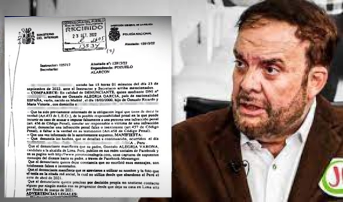 “El denunciante manifiesta que su padre, Gonzalo Alegría Varona, candidato a la alcaldía de Lima, Perú, publicó en sus redes sociales de Facebook y en su página web, unas capturas de supuestos mensajes del diciente hacia su padre […] el denunciante quiere dejar constancia que no escribió esos mensajes, son totalmente falsos e inventados”, se lee en el documento.
