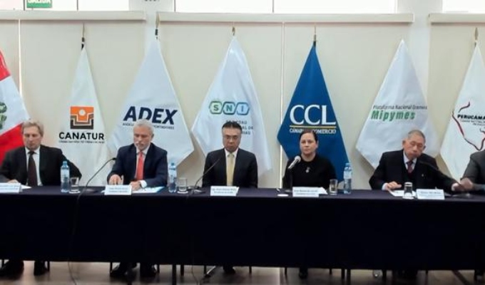 Más de 150 gremios entre ellos la Asociación de Exportadores (ADEX), la Cámara Nacional de Turismo del Perú (CANATUR) y la Cámara de Comercio de Lima, se reunieron para pronunciarse acerca de la visita de la delegación de Alto Nivel de la Organización de los Estados Americanos (OEA), a nuestro país.