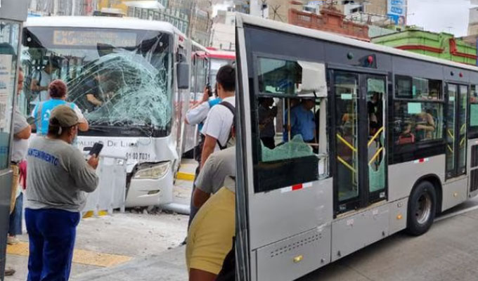 El accidente se registró esta mañana en la estación España, en la Av. Alfonso Ugarte, en el Cercado de Lima. El choque de dos buses del Metropolitano dejó al menos ocho pasajeros heridos de distinta consideración.