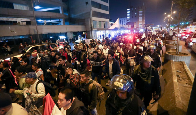 Tras varios minutos, recalaron en el Palacio de Justicia y la sede del Ministerio Público, desde cuyos exteriores los manifestantes corearon lemas contra el Gobierno, Congreso y diversas instituciones, informa Andina.