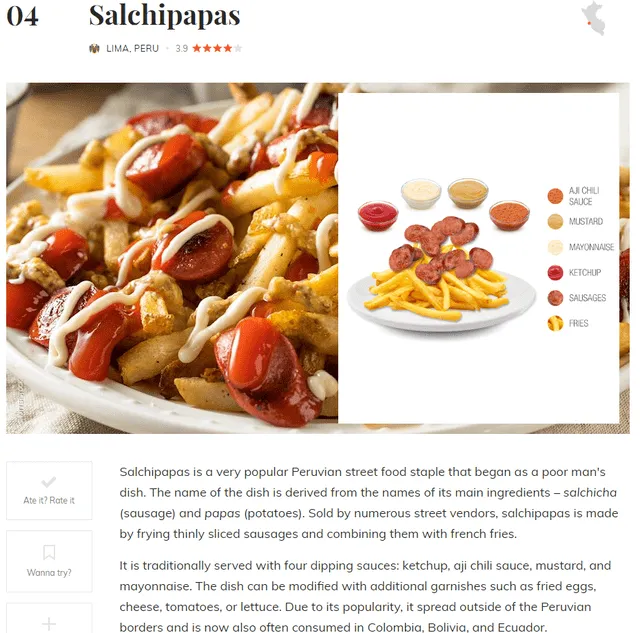Esta nominación del portal gastronómico “Taste Atlas” ha causado sorpresa entre los peruanos, quienes consideran a la salchipapa como uno de sus platillos favoritos.