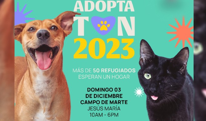 La Fundación Rayito en alianza con la Municipalidad de Jesús María realizarán este domingo 3 de diciembre, la "Adoptatón 2023", evento más grande de adopciones de mascotas en la Explanada del Campo de Marte.