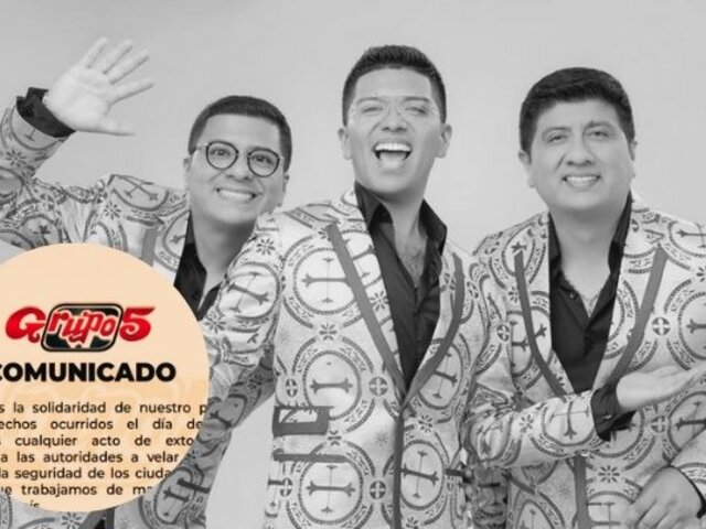 El pasado 23 de diciembre, unos delincuentes atentaron contra una vivienda utilizada por Grupo 5, ubicada en el distrito de Los Olivos. Ante este incidente, la agrupación se pronunció señalando que condenan cualquier acto de extorsión y solicitando a las autoridades trabajar con mayor firmeza para el resguardo de los ciudadanos.