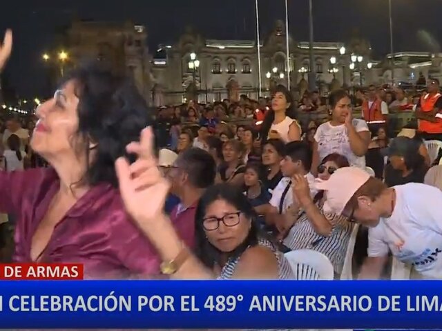 Pasada las 12 de la noche de hoy jueves, la Plaza Mayor de Lima se llenó de una gran algarabía para conmemorar el 489 aniversario de la capital. El evento atrajo a cientos de personas, así como a varias orquestas de música que amenizaron la festividad.