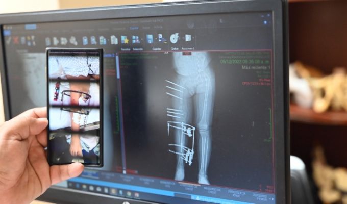 El proceso de recuperación fue largo y desafiante, pero Breison y su familia no estaban solos en su lucha. Un año después, en 2023, una segunda cirugía ofreció un nuevo rayo de esperanza. Esta vez, los médicos del INSN aplicaron el sistema de fijación externa Ilizarov, un método innovador para alargar y corregir huesos. El Dr. Andrés Fernández explicó el procedimiento: "Esta técnica ayuda a corregir la rotación de los huesos".