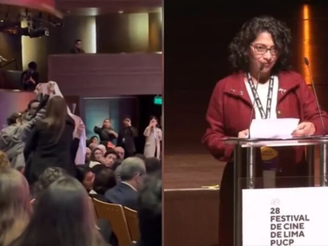 La ministra de Cultura, Leslie Urteaga, fue abucheada por un grupo de personas durante su participación en la inauguración del Festival de Cine de Lima la noche de este jueves 8 de agosto en el Gran Teatro Nacional.