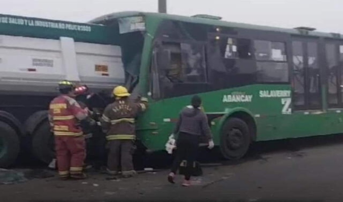Por muy poco y se registra una tragedia: más de 15 heridos por choque entre bus y camión en la Ramiro Prialé