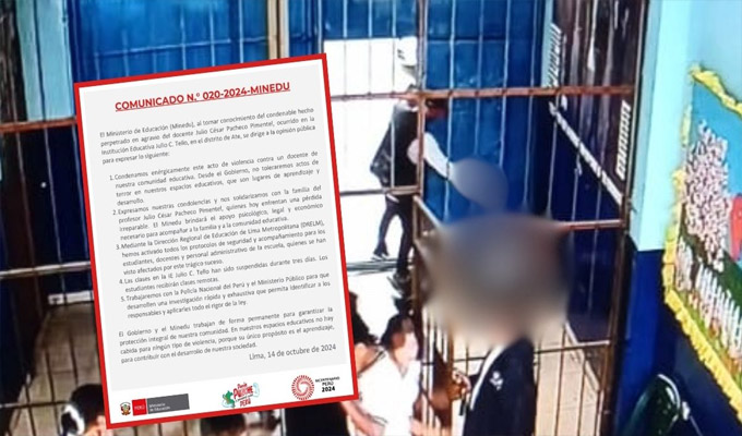 Asimismo, Quero Gaime dio sus condolencias a la familia del maestro y pidió la unidad de los peruanos para enfrentar la delincuencia. “Lo que no debe suceder es que el crimen nos vea divididos. Aquí estamos todos unidos para trabajar en contra de la delincuencia”, añadió.