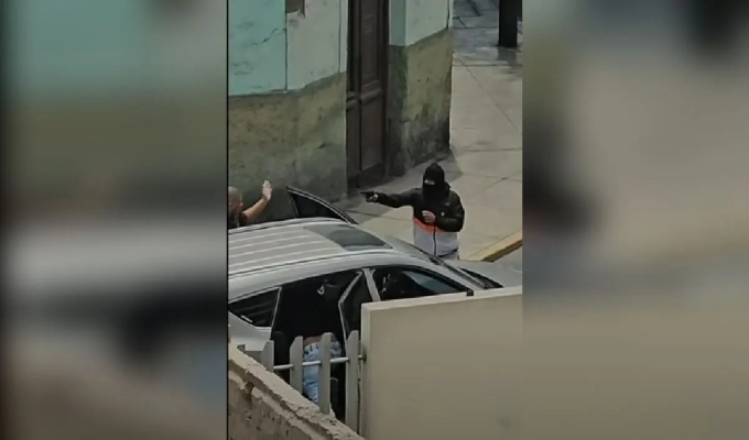 En un video difundido por RPP, se observa a tres delincuentes con pasamontañas y armados, que amenazan al conductor de una camioneta, obligándolo a descender del vehículo.