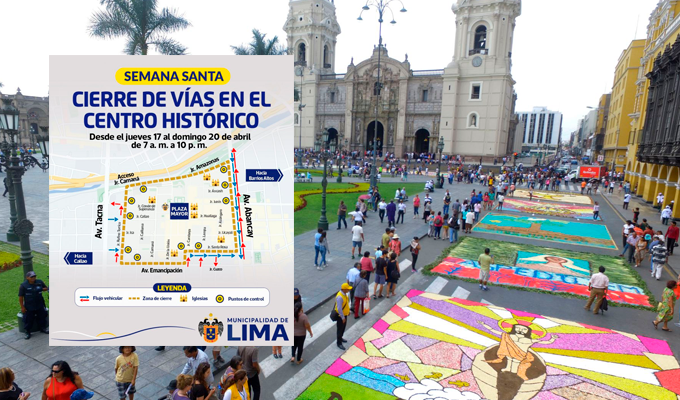Con el objetivo de garantizar la seguridad de millas de feligreses y visitantes durante las celebraciones de Semana Santa 2025, la Municipalidad de Lima anunció el cierre temporal de calles en el Centro Histórico de la capital. La medida estará vigente desde el jueves 17 hasta el domingo 20 de abril, en el horario de 7 am a 10 pm, y busca asegurar un tránsito ordenado y prevenir incidentes durante las tradicionales procesiones religiosas.