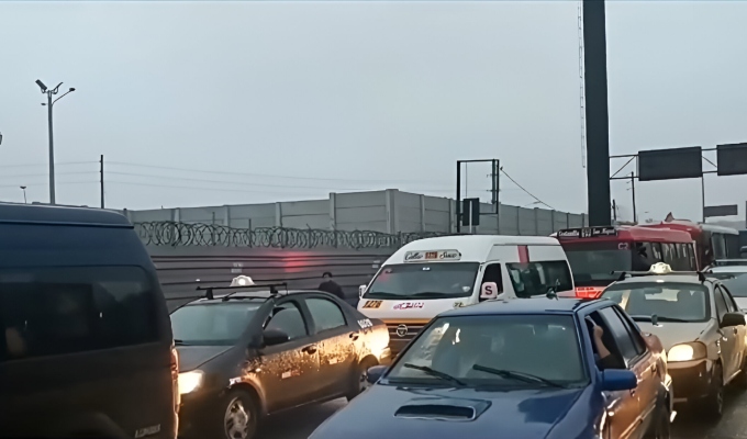 La confluencia de buses de transporte público, autos particulares y camiones se vio agravada por el cierre de la vía desde el jirón Manco Cápac hasta la avenida Chalaca, producto de las obras de la Línea 2 del Metro de Lima.