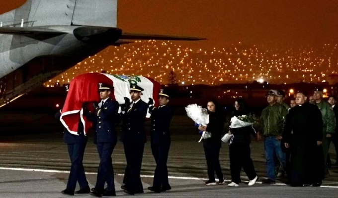 Su cuerpo llegó a Lima a la 1:10 a.m. a bordo de una aeronave C-27J Spartan, cubierto con la bandera nacional. Fue recibido con honores por el comandante general de la FAP, Carlos Enrique Chávez, y el ministro de Defensa, Walter Astudillo.
