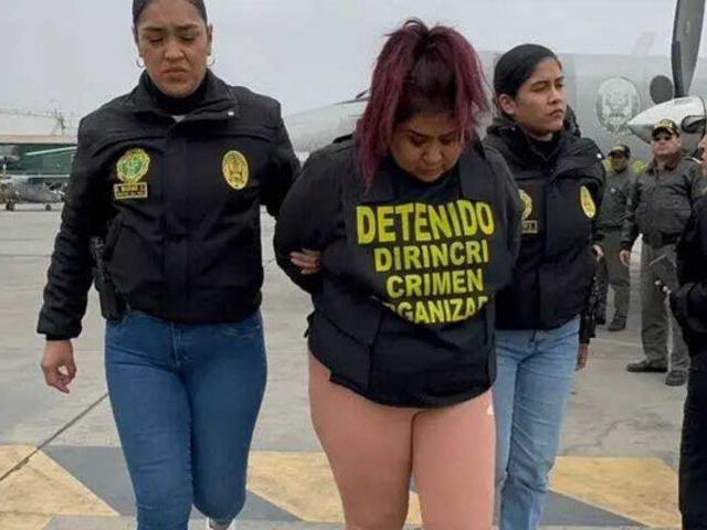 Ella es señalada como presunta integrante de la organización criminal 'Los Injertos del Cono Norte', que lidera su pareja y padre de sus hijos, tras llegar a la capital, la mujer fue trasladada inmediatamente a la Dirección de Investigación Criminal.
