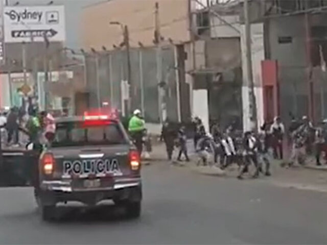 Horas previas al partido entre Alianza Lima y Binacional, programado para las 08: 00 p.m. de ayer, presuntos barristas blanquiazules se enfrentaron con piedras y palos a un grupo de policías en el kilómetro 20 de la Panamericana Norte, en Los Olivos.