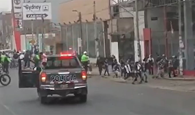Horas previas al partido entre Alianza Lima y Binacional, programado para las 08: 00 p.m. de ayer, presuntos barristas blanquiazules se enfrentaron con piedras y palos a un grupo de policías en el kilómetro 20 de la Panamericana Norte, en Los Olivos.