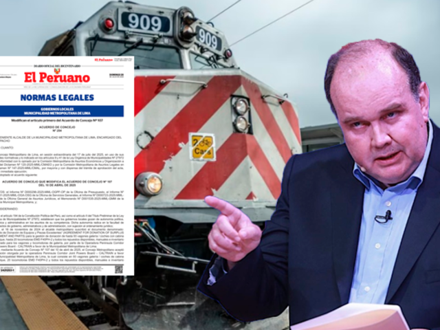 La Municipalidad Metropolitana de Lima, liderada por Rafael López Aliaga, verá reducida la cantidad de vagones y locomotoras donadas por la empresa estadounidense Caltrain. Así lo oficializó el diario El Peruano este domingo 20 de julio, donde se publicó la modificación del Acuerdo de Concejo N.º 107. “Aceptar la donación [...] la cual consiste en 90 vagones galería / coches de cabina y remolque, 19 locomotoras EMD F40PH-2 y todos los repuestos disponibles”, indica el texto aprobado por el Concejo Metropolitano de Lima.