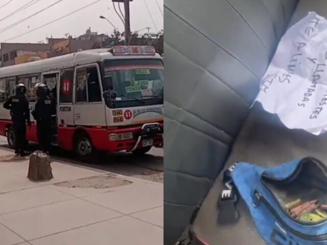 Durante el paro de transportistas que se lleva a cabo este lunes 6 de octubre, sujetos desconocidos dejaron una réplica de granada y municiones dentro de un bus de transporte público, en el cruce de la avenida Mariátegui con Héroes del Cenepa, en San Juan de Lurigancho.