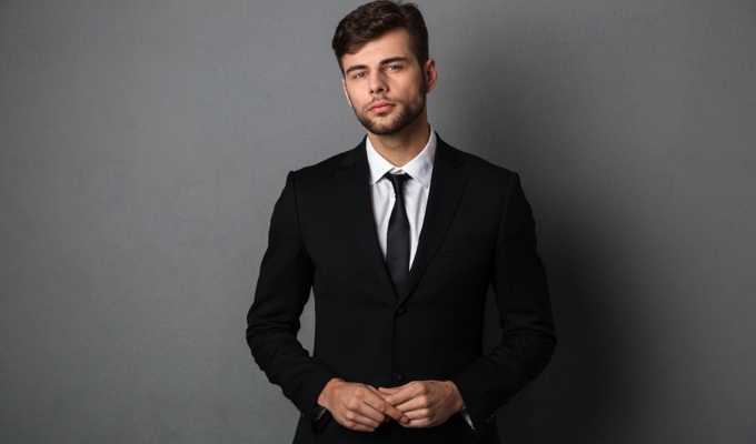 Si el saco tiene más de un botón, solo debes abotonar el superior, ya que el botón inferior es decorativo y abotonarlo hace que el saco se vea apretado y adopte una forma extraña. Esta regla aplica para ternos de dos botones; en los de tres botones, el del medio siempre va abotonado, el superior es opcional y el inferior nunca se abrocha.