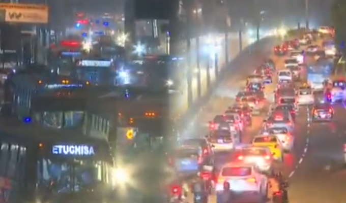 Uno de los puntos más críticos se registra en la zona de MegaPlaza, donde una gran cantidad de vehículos de transporte público y particulares avanza a paso lento debido al alto flujo de personas que realizan compras de última hora en centros comerciales o se desplazan desde sus centros de trabajo, principalmente desde el centro de Lima hacia distritos del norte de la capital.