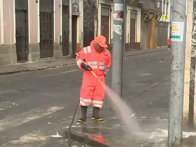 Pese a que existe numerosos tachos para la basura, todo estaba disperso por las calles, en algunos casos generando montículos que dificultaban el tránsito de vehículos y personas. Tras el recojo de la basura se baldeó y desinfectó la zona.
