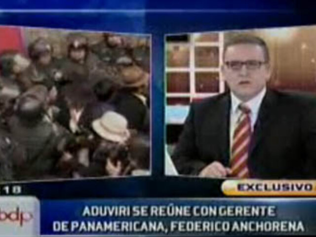 Protestas en exteriores de Panamericana TV ante inminente detención del dirigente Walter Aduviri