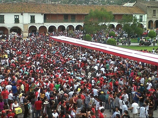 Miles de pobladores y turistas llegaron a la plaza de armas de Huamanga en Ayacucho para festejar el tradicional 'Jala Toro' o 'Pascua Toro'. Los toros son jalados por jinetes montados en caballos, quienes se desplazan por las calles mientras los asistentes corren delante del animal.