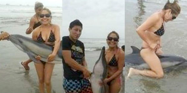 Dos jóvenes captados en cuatro fotografías tomadas en una playa peruana, donde aparecen cargando y sentándose encima de un delfín que había varado, fueron identificados, publicó un diario local.