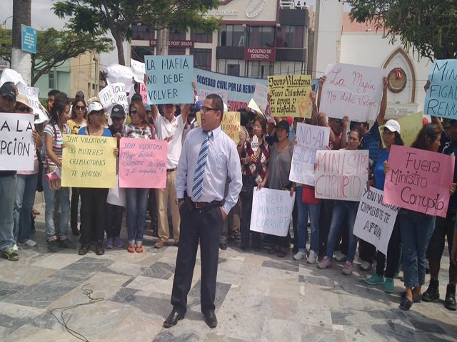 Tras conocer el despido de la exprocuradora anticorrupción, decenas de ciudadanos protestaron en la Plaza de Armas de Chimbote en respaldo a Yeni Vilcatoma, quien fue destituida de su cargo tras denunciar presión por parte del ministro de Justicia Daniel Figallo en el caso Marín Belaúnde.