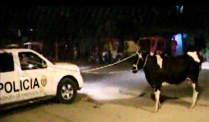 Una curiosa intervención policial que tuvo lugar en el oriente peruano se convirtió en noticia, pues nada menos que una vaca fue detenida por haber asustado a los transeúntes y vecinos de la zona, además de alterar el orden público. Ocurrió en Tarapoto, departamento de San Martín.