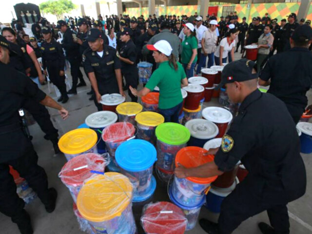 Al menos 120 policías de Piura, que resultaron afectados por las fuertes lluvias e inundaciones a causa del Fenómeno El Niño, fueron beneficiados con donativos recolectados por sus compañeros de trabajo.