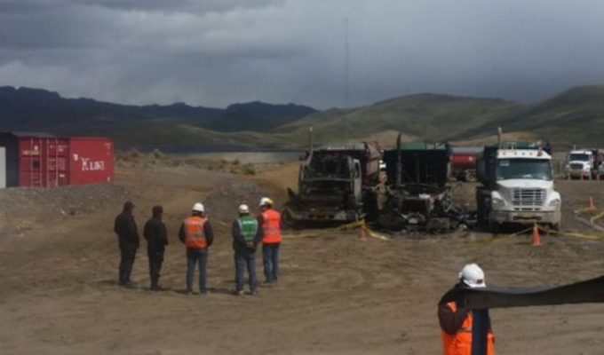 La madrugada de ayer, se registró el incendio de tres camiones encapsulados de la empresa minera Hudbay Minerals con sede en Chumbivilcas, Cusco. Según la policía, el hecho sucedió en una de las instalaciones de la mina en el distrito cusqueño de Livitaca.