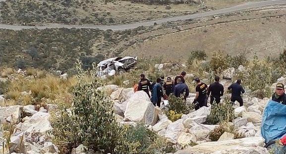 Una combi cayó a un abismo de más de 200 metros de profundidad en el kilómetro 42 de la carretera de penetración Carhuaz-Chacas.