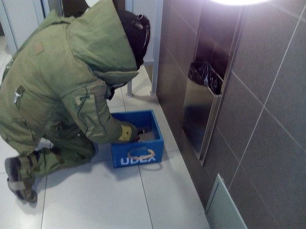 Agentes de la Unidad de Desactivación de Explosivos (Udex), con trajes antibombas, llegaron al terminal aéreo para neutralizar la granada. Finalmente la trasladaron a una zona segura para producir la detonación.