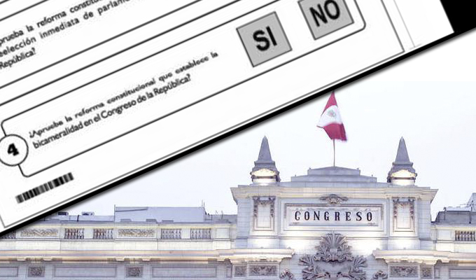 En 1992 el ex presidente Alberto Fujimori disolvió el Congreso, luego del autogolpe, en 1993, un nuevo Congreso convocado por Fujimori, elaboró la actual Constitución que planteó que el Parlamento cuente con una sola cámara, de 120 congresistas, cantidad que fue modificada en 2011 a 130 congresistas. Este sistema que ha continuado hasta ahora y que podría cambiar si es que la población así lo resuelve en el Referéndum de hoy.