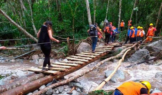 Ante esto, la Plataforma de Defensa Civil de Machu Picchu instaló un puente rústico de madera solo para el paso de peatones, lo que permite el tránsito de visitantes que se dirigen al parque arqueológico y viceversa.