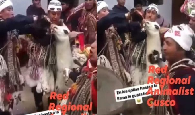 Un video registrado en Cusco, esta causando indignación en miles de internautas. En la grabación se observa a un grupo de danzantes obligando a una llama a beber cerveza como parte de la festividad de la Virgen del Carmen.