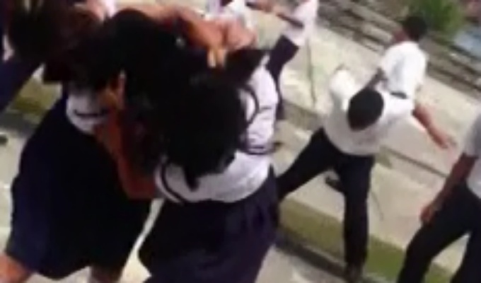 Las imágenes muestran cómo las estudiantes se jalaron del cabello y lanzaron puñetes, mientras eran animadas por sus demás compañeros, quienes presenciaban la escena y alentaban a las niñas a seguir peleando.